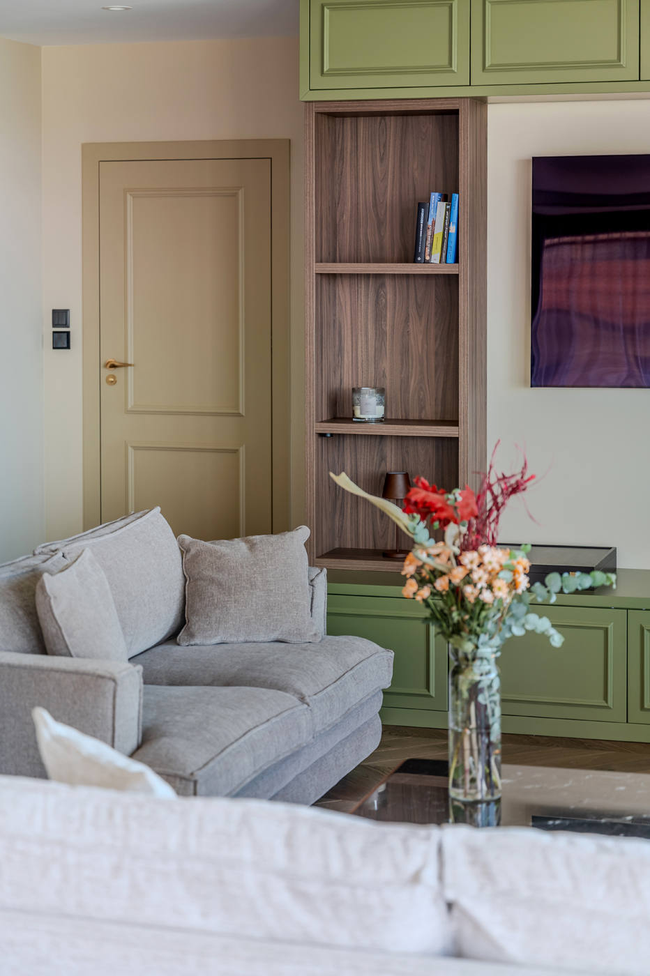 Wnętrze zaprojektowane dla pary artystów – przestrzeń, w której codzienność przenika się ze sztuką.